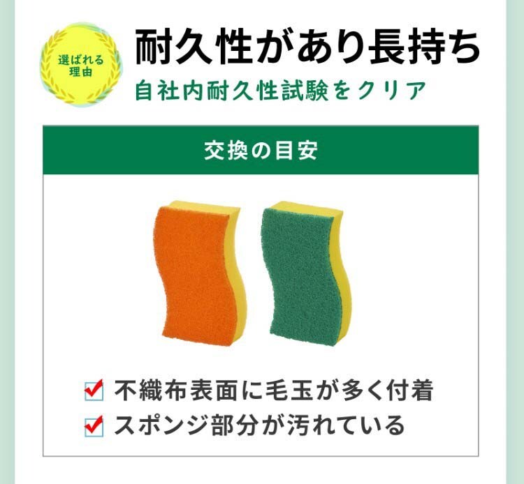 ●スポンジ素材自体に抗菌剤を練り込んでいるので、抗菌効果が持続します。