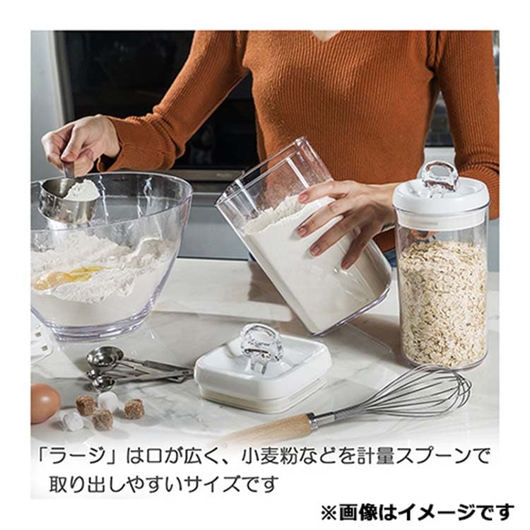 ●米、砂糖、小麦粉、プロテイン、スムージーパウダー、キャンディー、コーヒー、スナック、スパゲッティ、ペットフードなどの保存におすすめです。