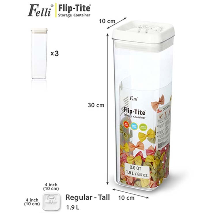 Felli フリップタイト 密閉保存容器 約10cm幅 1.9L 食洗器対応 食品保存 パスタ (3個セット)