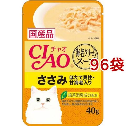 いなば チャオ 海老クリームスープ ささみ ほたて貝柱 甘海老入り (40g*96袋セット)