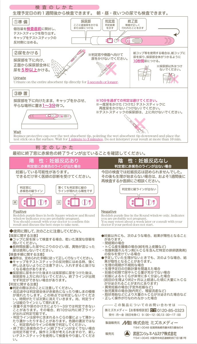 2.判定が陰性であっても、その後生理が始まらない場合、再検査するか医師に相談してください。