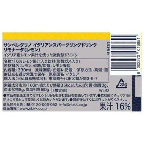 ●イタリアのレモンを使い、爽快な果実の酸味が特徴のリモナータ。本物の果実を使用して作られた商品のため、未開封時には容器の底に果肉が沈んでいます。(果汁16%)。