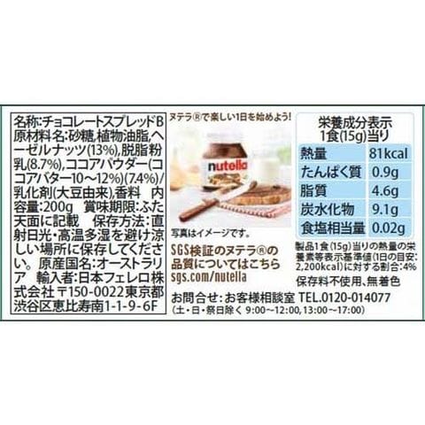 ヌテラ ココア入りヘーゼルナッツススプレッド (200g)