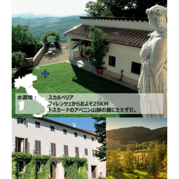 ●アクアパンナはイタリアのトスカーナ州にある水源「スカルペリア」から採水されたナチュラルミネラルウォーターです。その歴史は1564年までさかのぼり、約1300ヘクタールの広大な自然に囲まれたアクアパンナの水源とその周辺は、ルネサンス時代から有名なメディチ家に愛されてきました。現在は自然保護地区として豊かな自然環境が守られています。