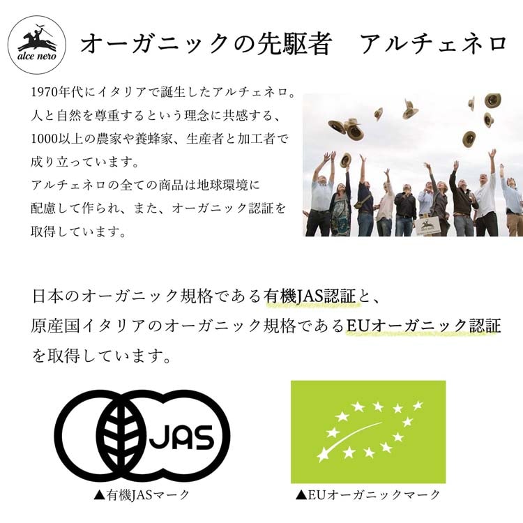 ●アルチェネロの有機パスタは、オーガニック農法で大切に育てられた生産者メンバーの小麦を、美しい山々に囲まれたきれいな水と空気のもと、最適な製法でパスタへと加工しています。そのため、品質の良さ、伝統農法を貫く真摯さに加え小麦の持つおいしさや栄養価が楽しめます。