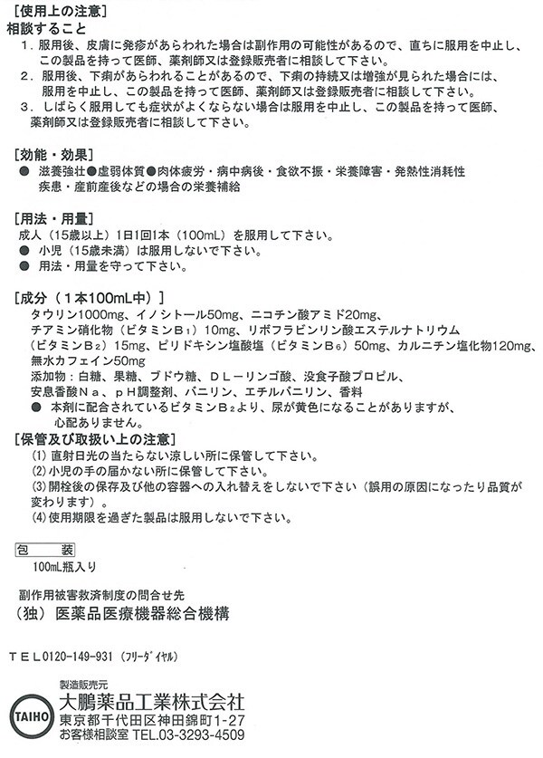 ・成人(15歳以上)1日1回1本(100mL)を服用して下さい。