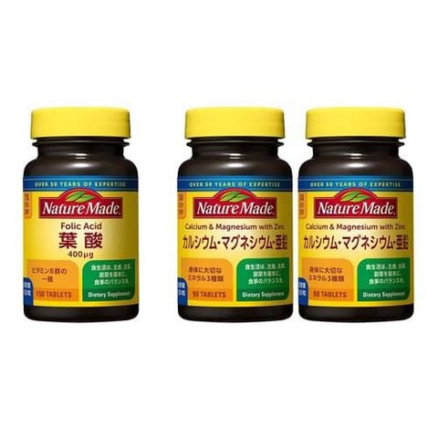 | ネイチャーメイド葉酸150粒、ネイチャーメイドカルシウム・マグネシウム・亜鉛90粒×2個 |