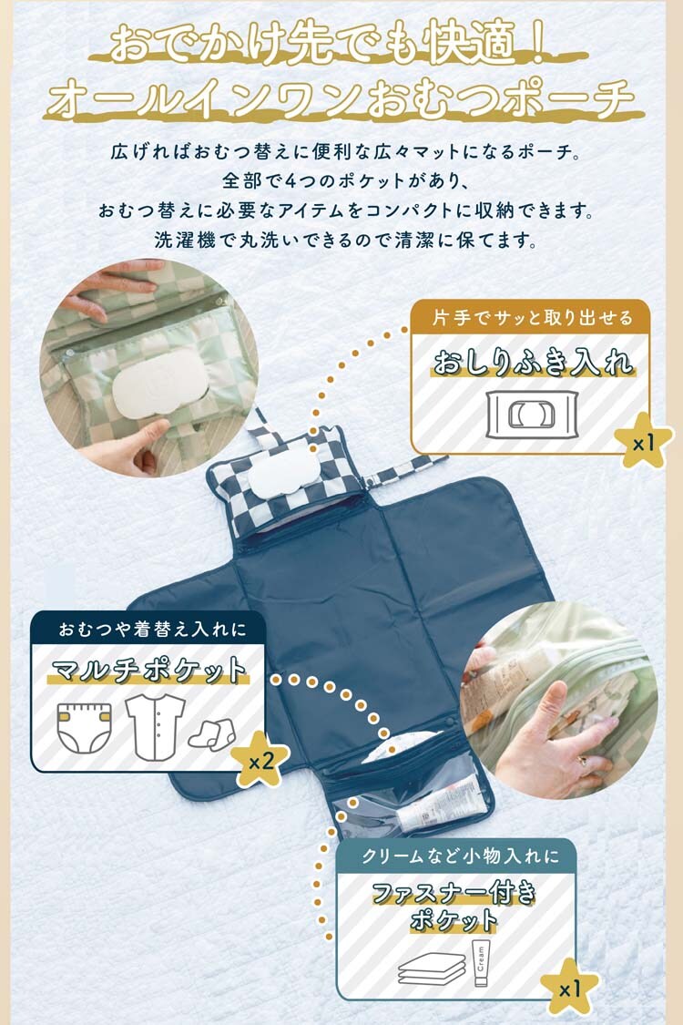 ●収納たっぷりのおむつ替えマット×おむつポーチ