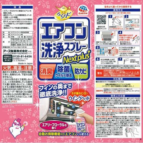 らくハピ エアコン洗浄スプレー Nextplus エアリーフローラルの香り 2本パック 掃除 (420ml*2本*5セット)