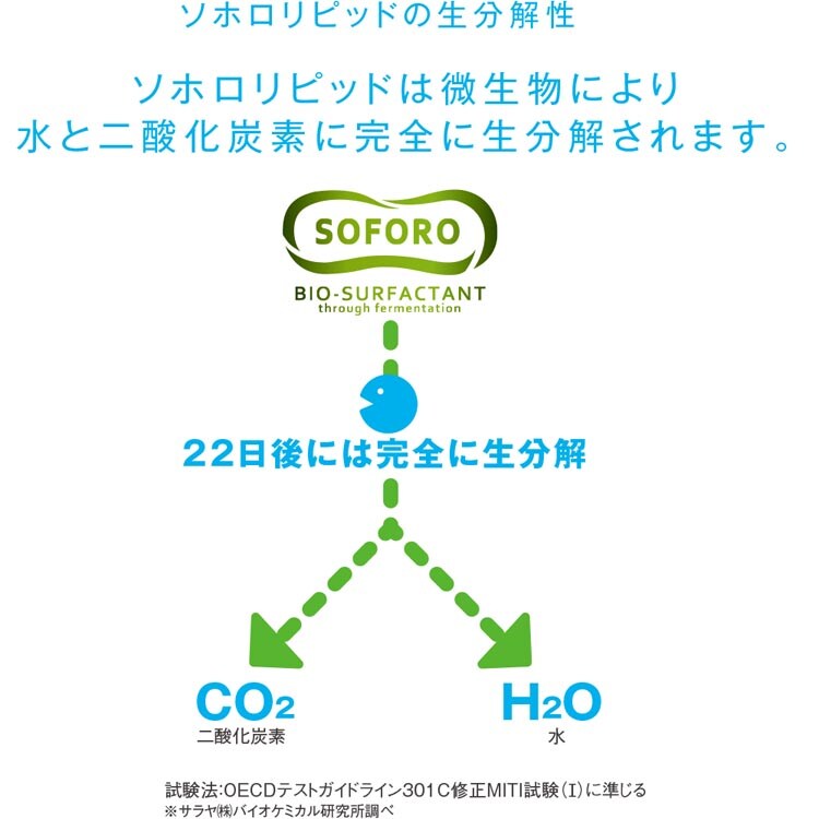 | 洗浄助剤(ソホロースリピッド)、アルカリ剤(炭酸塩)、水軟化剤(クエン酸塩)、pH調整剤(炭酸水素塩) |