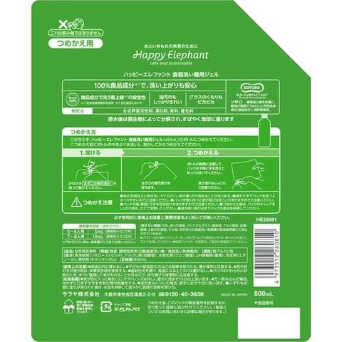 ハッピーエレファント 食器洗い機用ジェル つめかえ用 (800ml*2袋セット)