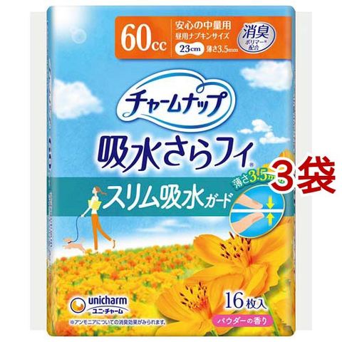 チャームナップ スリム吸水ガード 安心の中量用 羽なし 60cc 23cm (16枚入*3袋セット)
