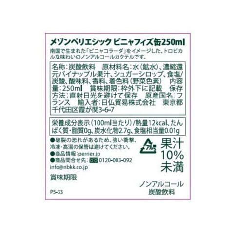 【メゾンペリエ シック ピニャフィズ 缶の商品詳細】