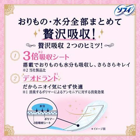 ●3倍(※1)吸収シート搭載で、約5CCの水分を吸収できます。