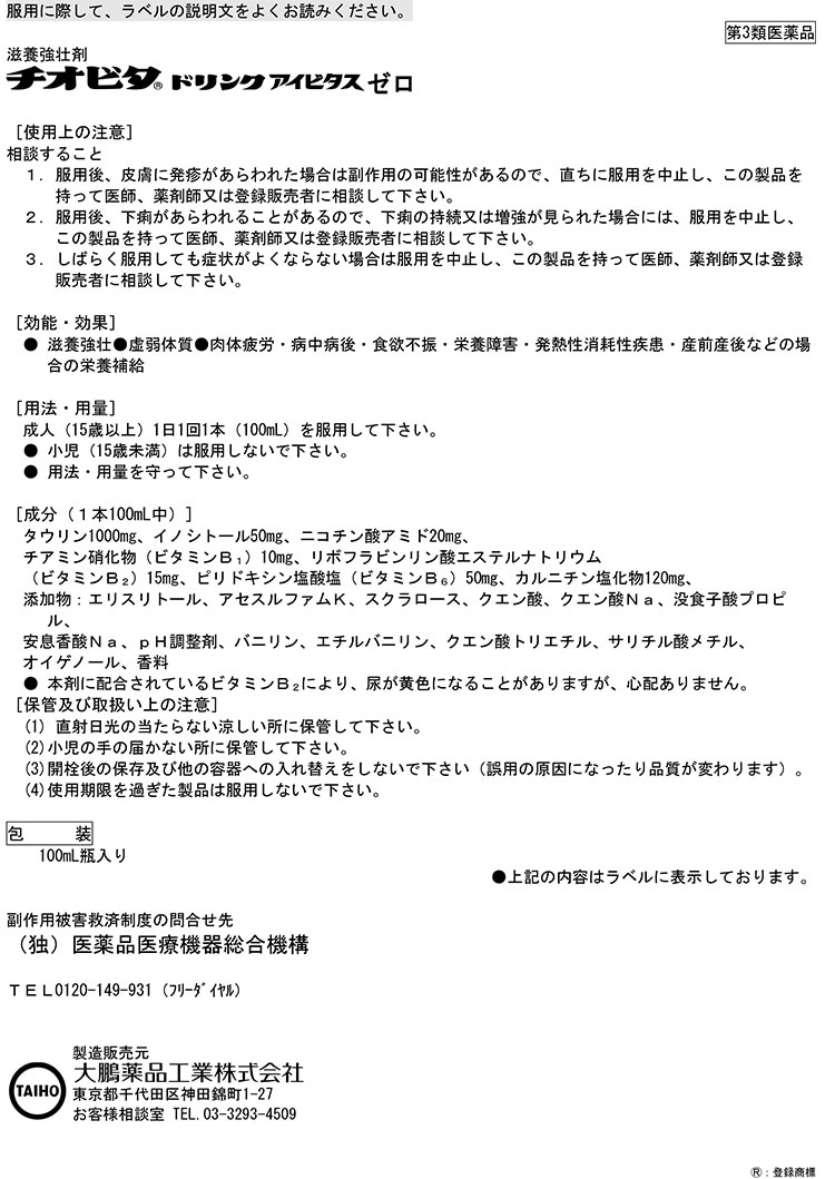 【チオビタドリンク アイビタスゼロの商品詳細】