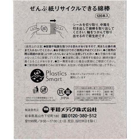 【ぜんぶ紙リサイクルできる綿棒 箱入の商品詳細】
