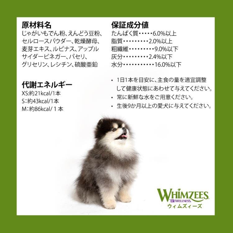 | たんぱく質:6.0%以上、脂質:2.0%以上、粗繊維:9.0%以下、灰分:2.4%以下、水分:16.0%以下、代謝エネルギーM:約86kcal/個 |