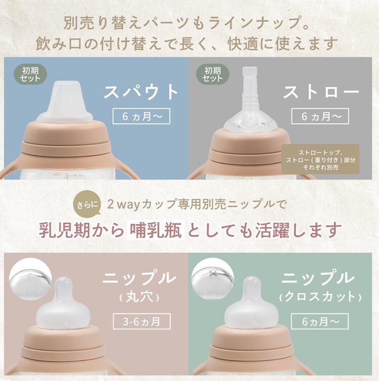 | ・素材:ストロー:シリコーンゴム ・接合部分:ポリプロピレン ・重り:ポリプロピレン、ステンレス鋼(内側) |