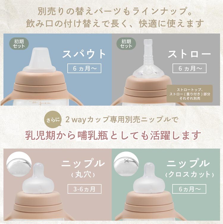 ●スパウト・ストローの2種の飲み口がセットになったnoukaの2Wayカップ専用替えパーツです。