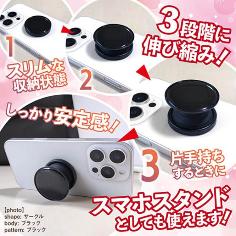●お手持ちのスマホ背面に取りつけて、片手で安全に使えるようにするスマホグリップ!