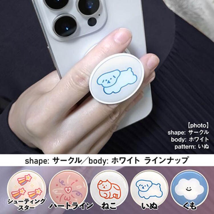 | 形状タイプ:サークル(円型) ボディ色:ホワイト 柄:くも 材質:PC・TPU・IRON・GELPATE・EPOXY サイズ:タテ40×ヨコ40×厚み7mm(厚み最大24mm) 本体重量:10g パッケージサイズ:60×113×22mm パッケージ込み重量:20g 生産国:韓国 |