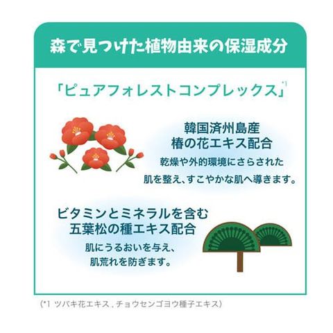 ●多様な分子量の8種類のヒアルロン酸(保湿成分)配合※1で、肌にハリと潤いを与え、すこやかな肌へ導きますフィトンチッド(済州島産 ヒノキ水)の森の香りで安らぎの時間をお届けします。