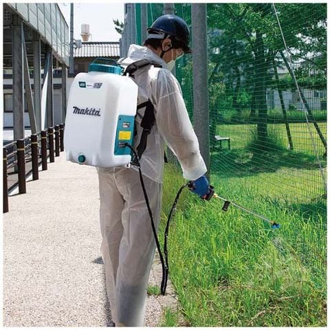 | 電源:直流18V。 本体のみ、バッテリ・充電器別売。 タンク容量:15L・最高圧力:0.5MPa。 ホース長:1.7m・バッテリ残容量表示(3段階)。 防じん・防水保護等級IP54。 1充電の連続作業時間(噴霧目安/BL1830B使用時):2頭口/185L(約3時間25分)・除草/400L(約3時間55分)※数値は参考値です。 本体寸法(mm)(長さ×幅×高さ):317×237×517。 質量(kg)(バッテリ含む):6.0(BL1830B使用時)。 |