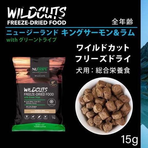 NTワイルドカット フリーズドライ キングサーモン&ラムwithグリーントライプ (15g)