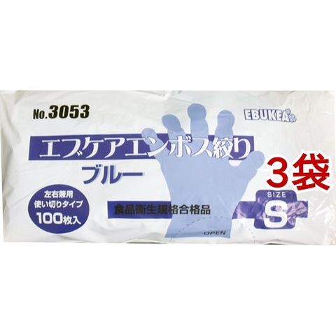 No.3053 食品加工用 エブケアエンボス絞りブルー Sサイズ 袋入 (100枚入*3袋セット)
