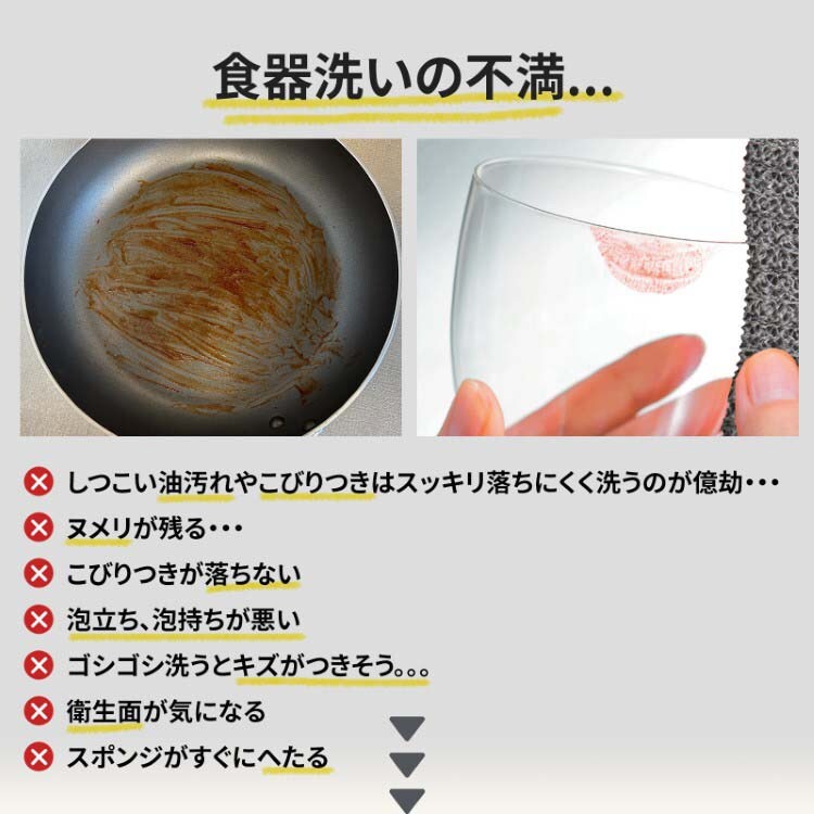 ●油汚れからこびりつき汚れまでスッキリ汚れを落とす。