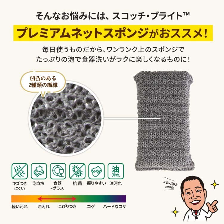【限定品 3M キッチン スポンジ プレミアム ネット グレー スコッチブライト KENT-01KGYの商品詳細】