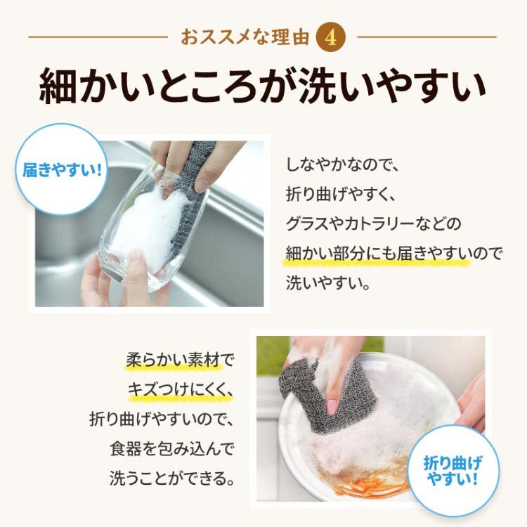 ●凹凸構造で泡立ちの良さと汚れ落ちの良さを両立したキッチンスポンジ。