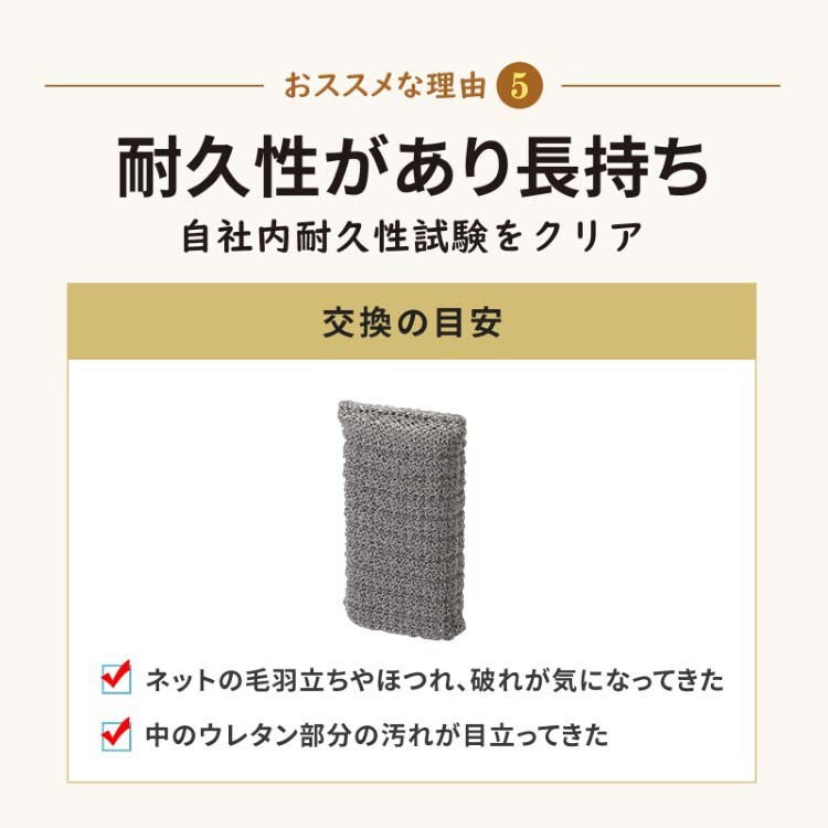 | ・素材:ネット(アクリル、ポリエステル)/ウレタンスポンジ ・色:グレー |