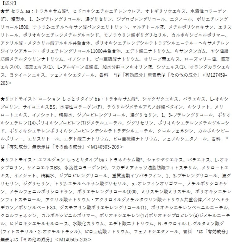 【販売名】:エリクシール ザ セラム aa、エリクシール リフトモイスト ローション しっとりタイプ ba、エリクシール リフトモイスト エマルジョン しっとりタイプ ba