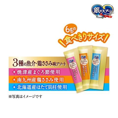 【銀のスプーン おやつ とろリッチ 3種のアソート まぐろ節&鶏ささみ&ほたて貝柱の商品詳細】