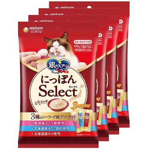 銀のスプーン おやつ とろリッチ 3種のアソート まぐろ節&ほたて貝柱&さけ使用 (6g×18本入×4袋)