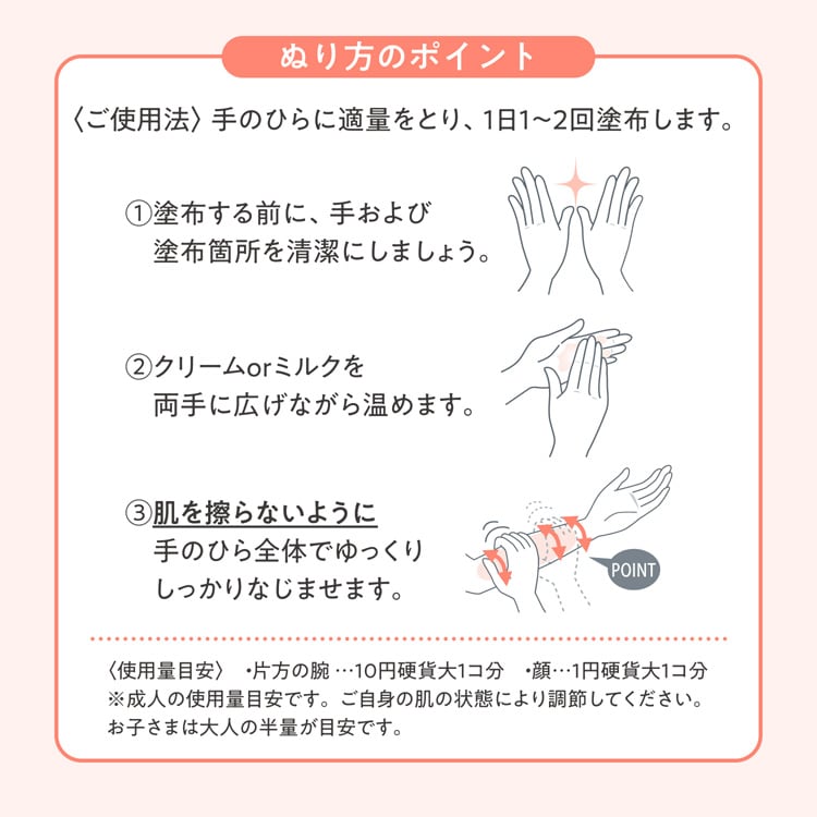 (1)塗布する前に、手および塗布箇所を清潔にしましょう。