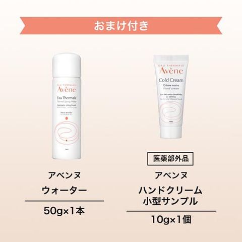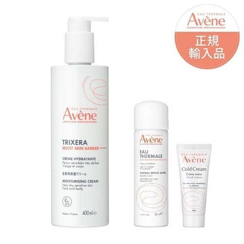 | ・アベンヌ トリクセラモイストスキンバリアクリーム400mL×1本 ・アベンヌウオーター50g×1本 ・アベンヌ 薬用ハンドクリーム10g×1本 |