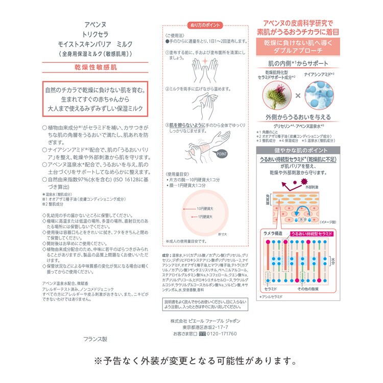 【販売名】アベンヌトリクセラモイストスキンバリアミルク、アベンヌウオーター、アベンヌ薬用ハンドクリーム