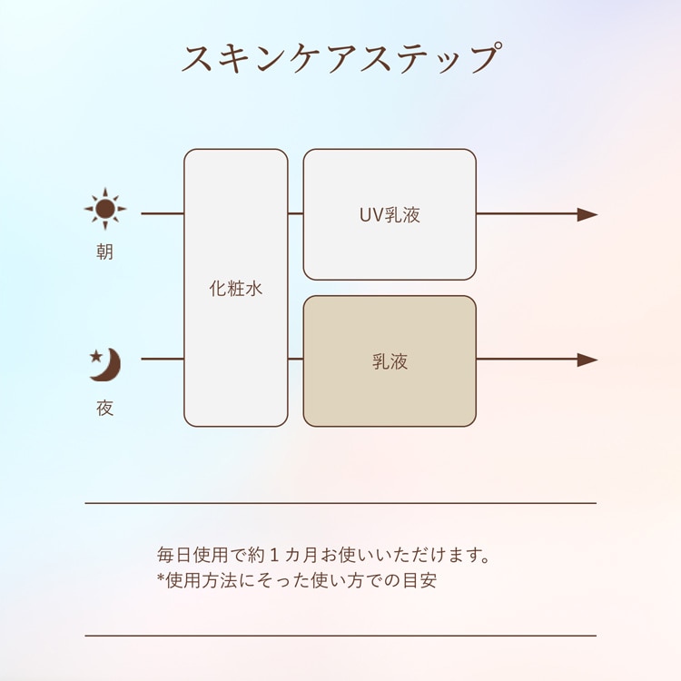 ・朝、夜の化粧水の後、手のひらに適量をとり、ていねいになじませます。(使用量の目安)10円硬貨大
