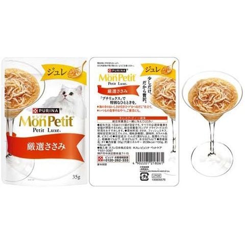 | ★ジュレ 厳選ささみ:ささみ、フィッシュエキス、増粘安定剤(加工でんぷん、増粘多糖類)、調味料、カラメル色素、ビタミンE ★ジュレ まぐろとかつおのかにかま添え:魚介類(かつお、まぐろ、かにかま、フィッシュエキス)、増粘安定剤(加工でんぷん、増粘多糖類)、調味料、着色料(カラメル色素、パプリカ色素)、ビタミンE ★ジュレ まぐろとかつおの鯛添え:魚介類(かつお、まぐろ、鯛、フィッシュエキス)、増粘安定剤(加工でんぷん、増粘多糖類)、調味料、カラメル色素、ビタミンE ★ジュレ 厳選まぐろ:魚介類(かつお、まぐろ、フィッシュエキス)、増粘安定剤(加工でんぷん、増粘多糖類)、調味料、カラメル色素、ビタミンE ★ジュレ 厳選かつお:魚介類(かつお、フィッシュエキス)、増粘安定剤(加工でんぷん、増粘多糖類)、調味料、カラメル色素、ビタミンE |