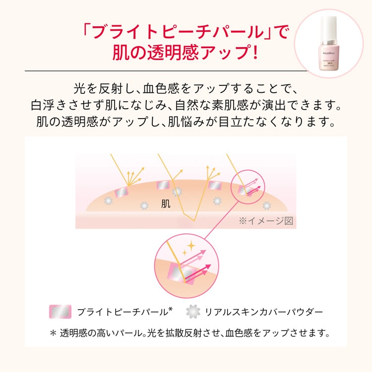 ●明るく輝き、自然な血色感*のある肌色へ ブライトピーチパール配合。