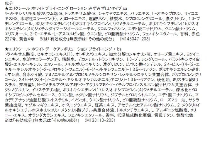 | ・エリクシール ホワイト ブライトニング ローション みずみずしいタイプ ca 170ml ・エリクシール ホワイト デーケアレボリューション ブライトニング + ba 5ml |