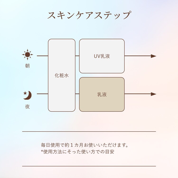 ・朝・夜の化粧水の後、手のひらに適量をとり、ていねいになじませます。