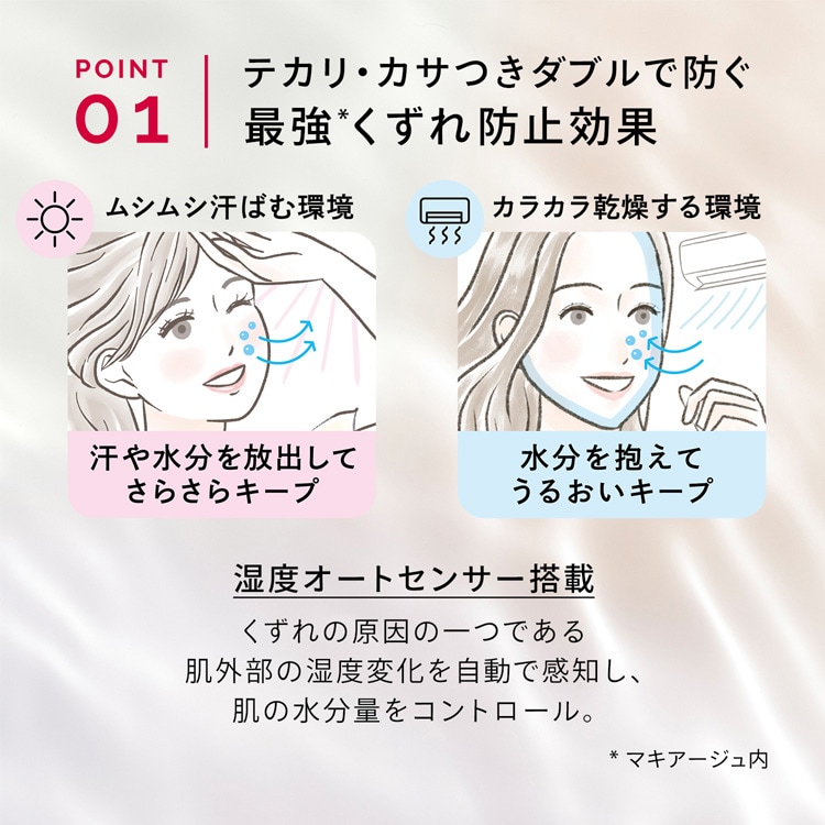 ※(テカり・皮脂くずれ・毛穴の目立ち・よれ・薄れ・くすみ・粉っぽさ)のなさ(メーカー調べ。効果には個人差があります。)