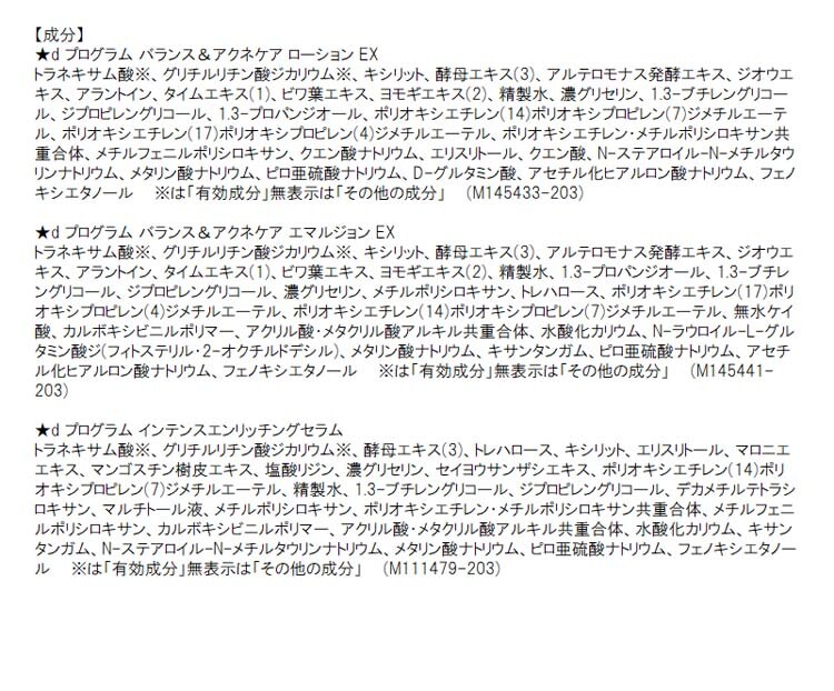 【販売名】d プログラム バランス&アクネケア ローション EX、d プログラム バランス&アクネケア エマルジョン EX、d プログラム インテンスエンリッチングセラム