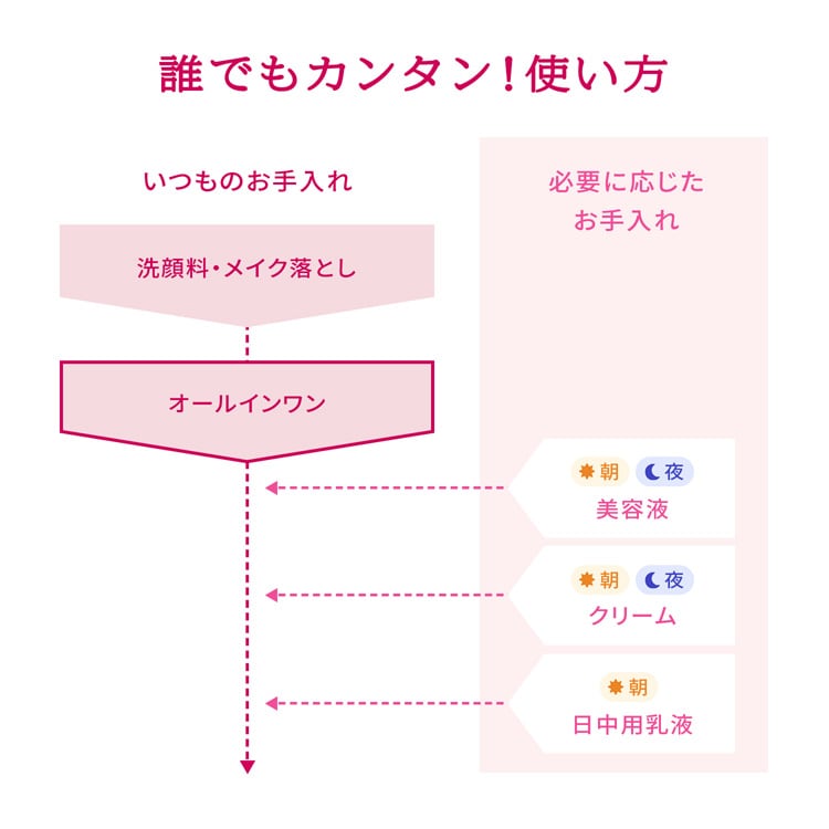 ●7つの機能(化粧水・乳液・美容液・マッサージ・クリーム・パック・化粧下地)がひとつになった大人のオールインワン。