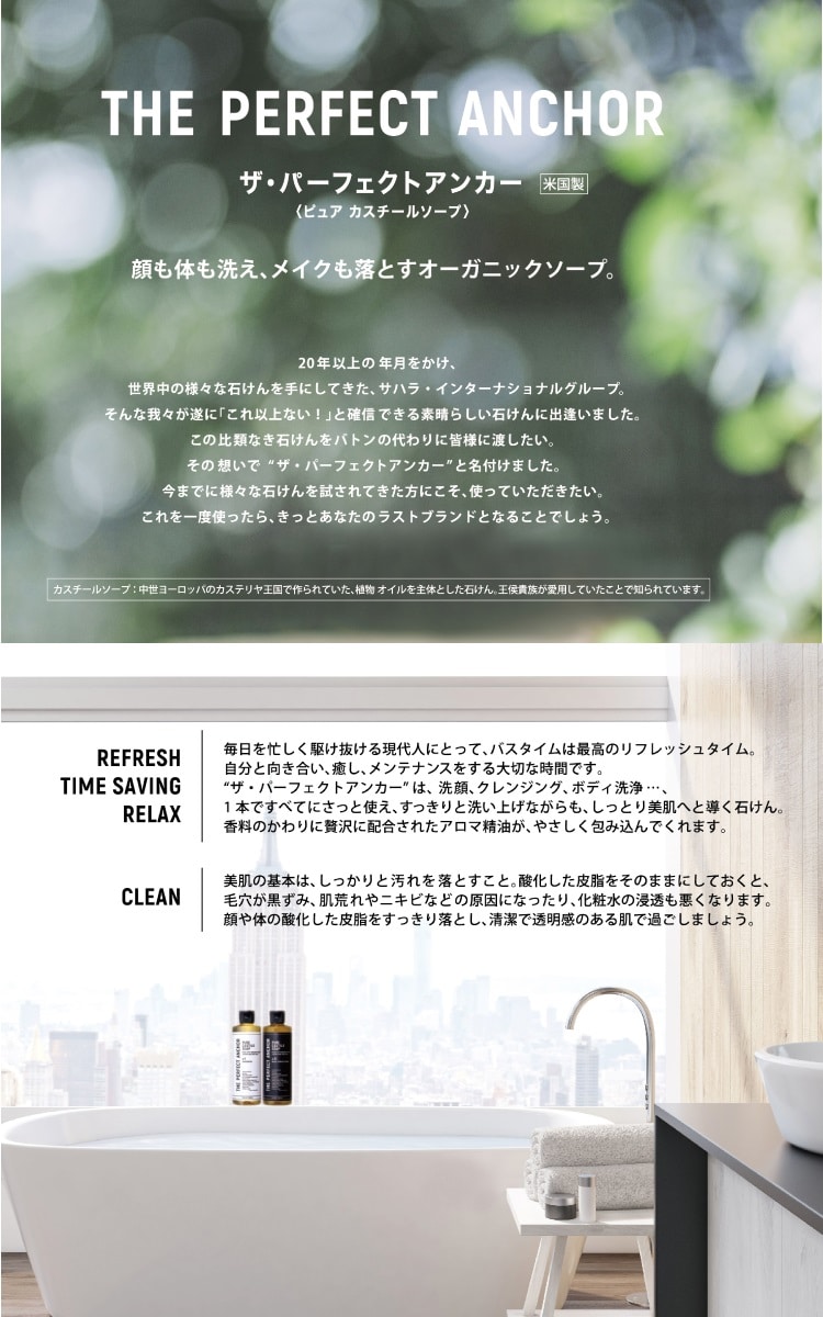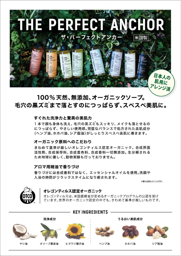 1本で顔も身体も洗え、毛穴の黒ズミ(酸化皮脂などによる汚れ)もスッキリ、メイクも落とせるのにつっぱらず、やさしい使用感。うるおい成分(ヘンプ油、ホホバ油、シア脂油)がしっとりスベスベ美肌に導きます。