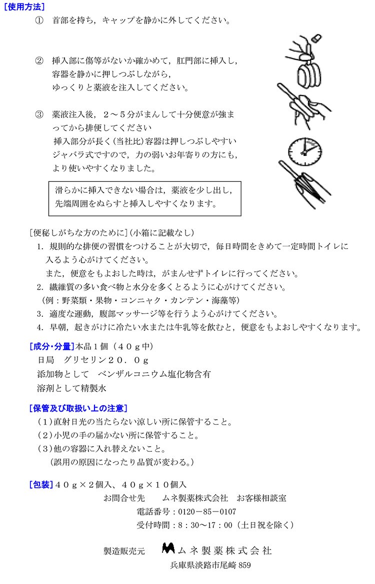 【コトブキ浣腸 ひとおし40の商品詳細】