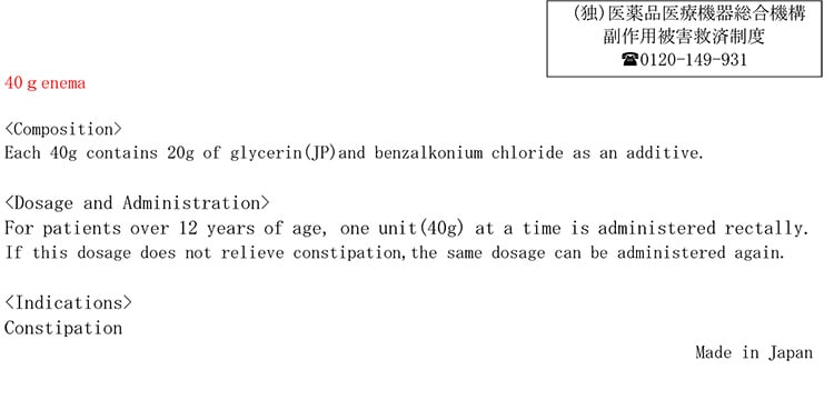 (使用後、すぐに排便を試みると薬剤のみ排出され、効果がみられないことがある。)